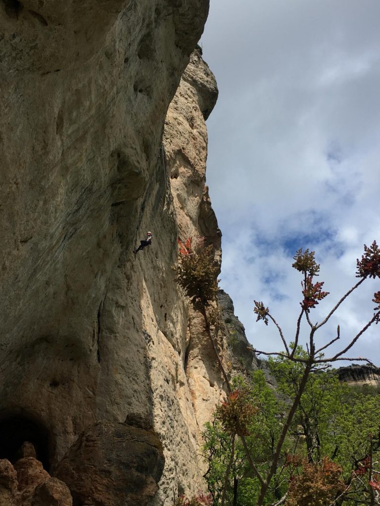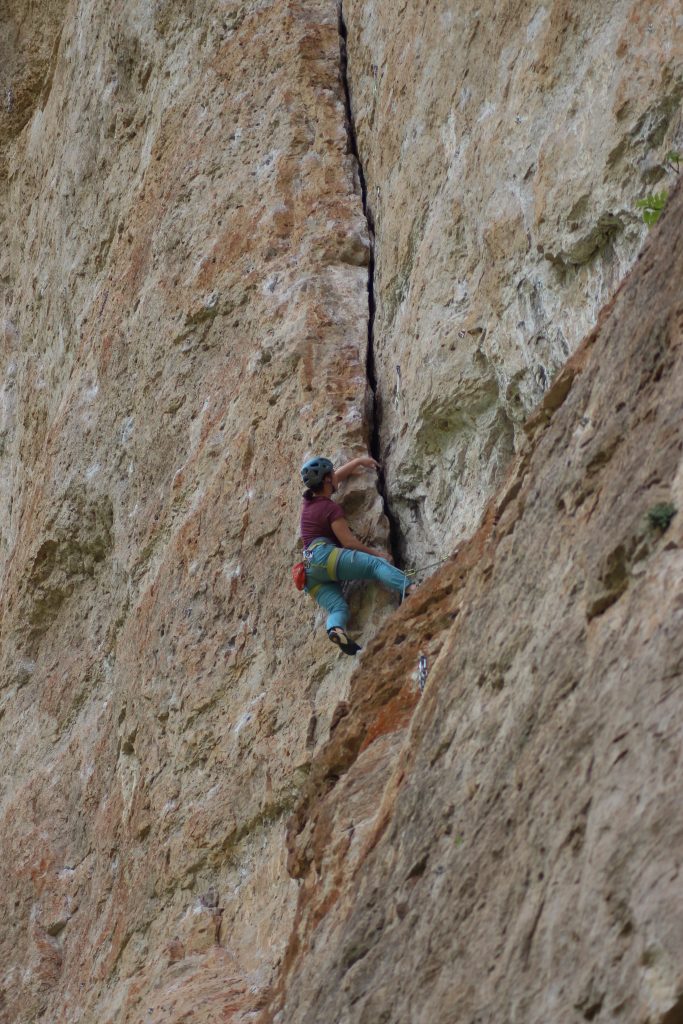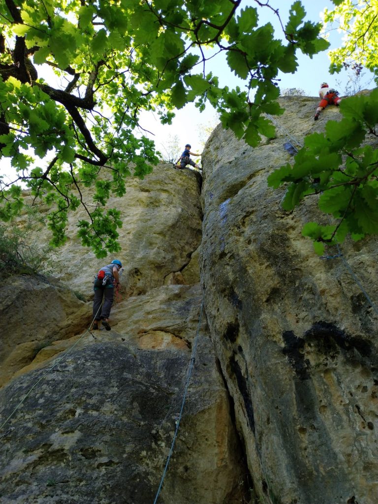 Tout a commencé le dimanche avec une première journée dans les gorges du Tarn. Une école de vol a dissipé toutes les inquiétudes et a permis à chacun de grimper directement dans son niveau max en tête. Et bam, deux 7A validés pour Augustin et Quentin. Les deux débutantes falaises, Nathalie et Blandine, ne sont pas en reste puisqu’elles ont réalisé au moins une voie en tête lors de ce premier jour ! Une grande partie du groupe aura l’opportunité de grimper un 6a remontant une magnifique fissure de 38 m de long, en moul ou en tête, un voyage incroyable !