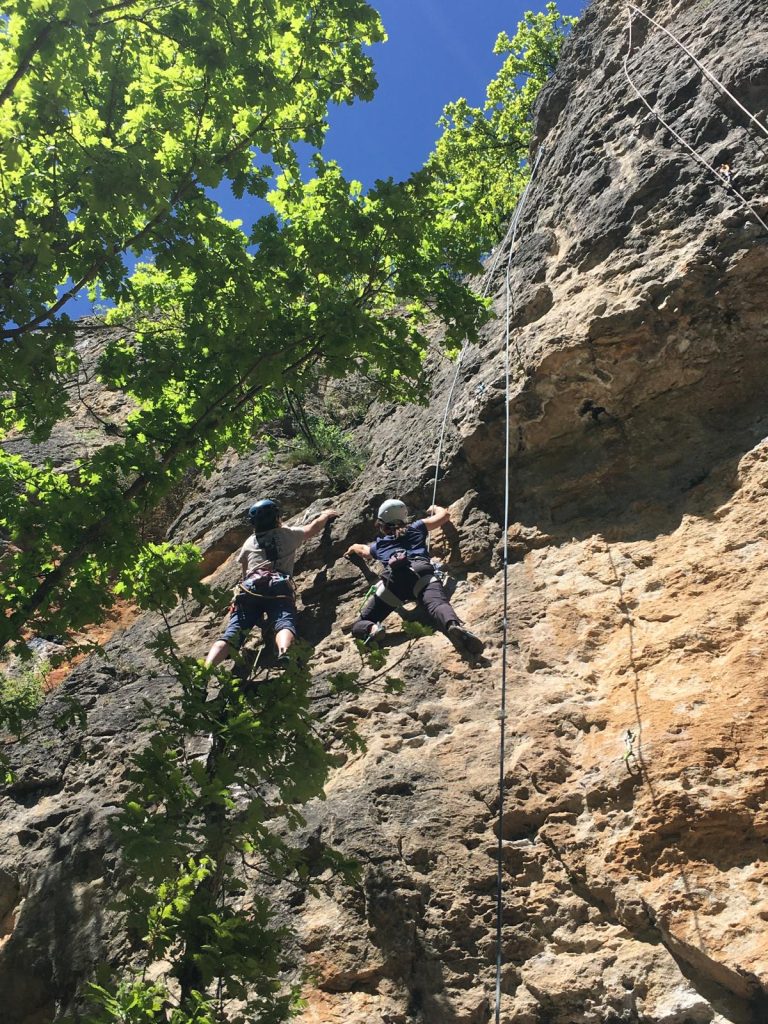 Lors de cette première sortie dans les Gorges du Tarn, de la Jonte et de la Dourbie, un groupe de 13 irréductibles grimpeurs a volé, fait ses premières voies en tête, son premier canyon, sa première grande voie, géré les courses et les repas, et tout ça dans la joie et la bonne humeur. Accompagnés de Guillaume, leur fidèle BE , ils ont relevé tous les défis avec brio en s’entraidant les uns les autres.