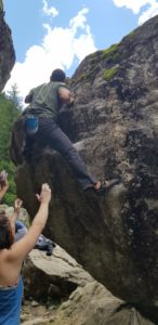 La fatigue après presque 5 jours de grimpe quasi sans pause se fait bien sentir. Tout le monde se retrouve à Ailefroide avec au choix blocs ou couennes. Le groupe se répartie selon les envies : les voies de dalle situées sur le secteur de la Draye seront enchainés tranquillement, pendant que l’autre moitié du groupe se fera décrypter l’essence du mouvement d’escalade (et donc tout ce qu’il se passe physiquement et mécaniquement dans notre corps lors de son exécution) par Babard. Ainsi, les blocs ne nous auront pas résisté bien longtemps !