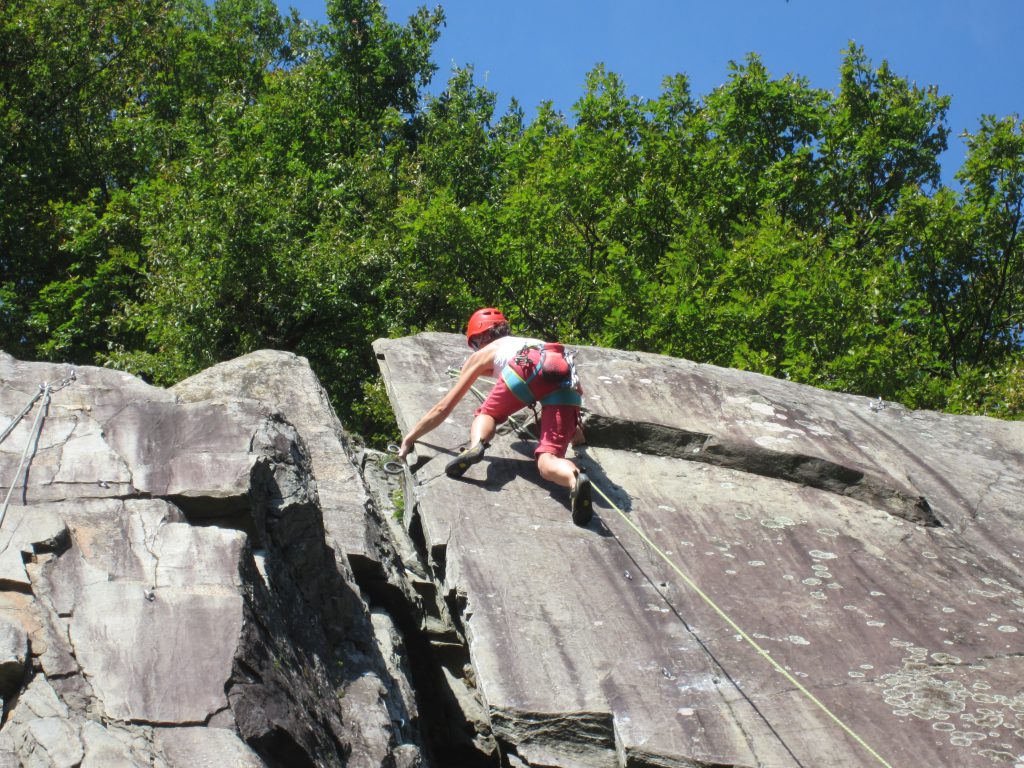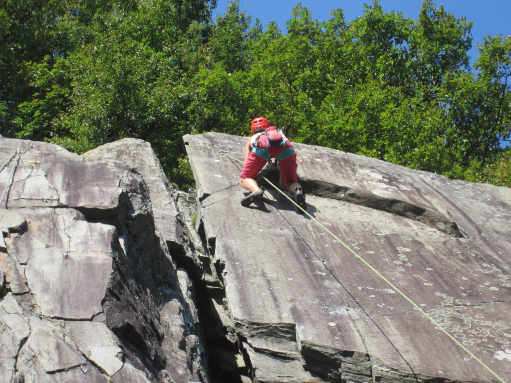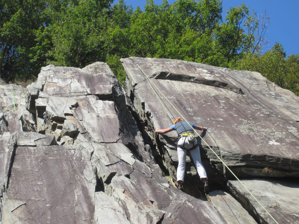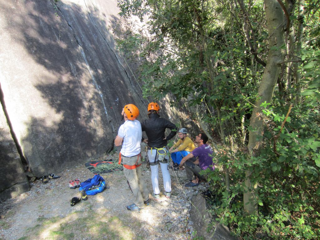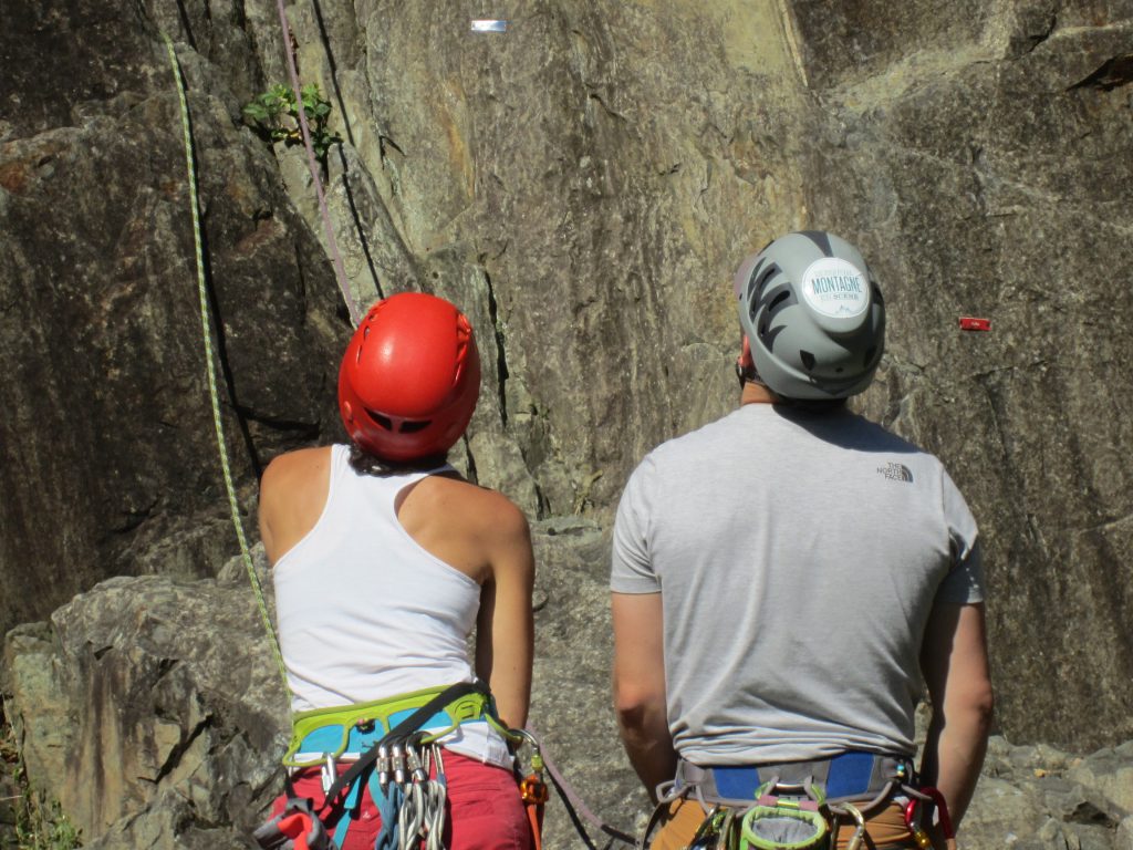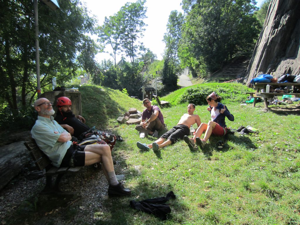 On notera tout d’abord, l’infinie pédagogie et patience de nos deux initiateurs qui, outre, les rappels de base quant aux manips de relais (pose d’une moulinette et rappel) ont délivré de riches conseils quant à la pause des coinceurs. Le soleil aura été au rendez-vous les trois jours de la sortie pour notre plus grand plaisir. La falaise est au soleil dès le matin et durant midi puis l’ombre vient rafraîchir les grimpeurs au fur et à mesure que l’après-midi avance.