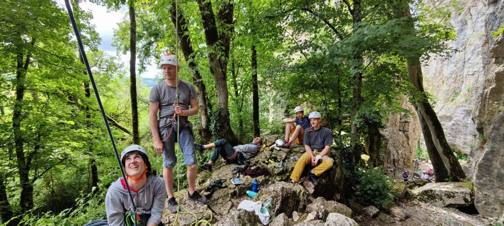 Covoiturages faciles depuis Paris pour la Côte-d’Or : la vaillante équipe, composée de Marie, Thierry, JB, Gwen, Cécile, Joël et Juliette alias JuJo, Bao, Julien et Mika, s’est retrouvée tout à fait au complet à partir du samedi matin à Saffres. Le site de Saffres pouvait nous occuper longtemps, il comporte plus de 300 voies d’une longueur, en vertical sur de belles falaises calcaires ombragées.